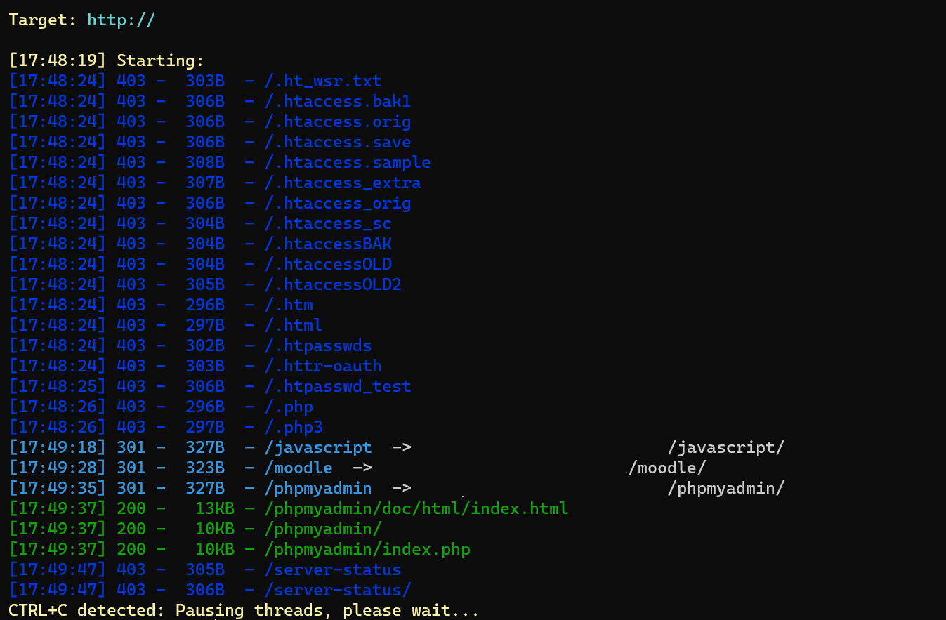 Exploring test.redacted.com with dirsearch uncovers a phpmyadmin directory.