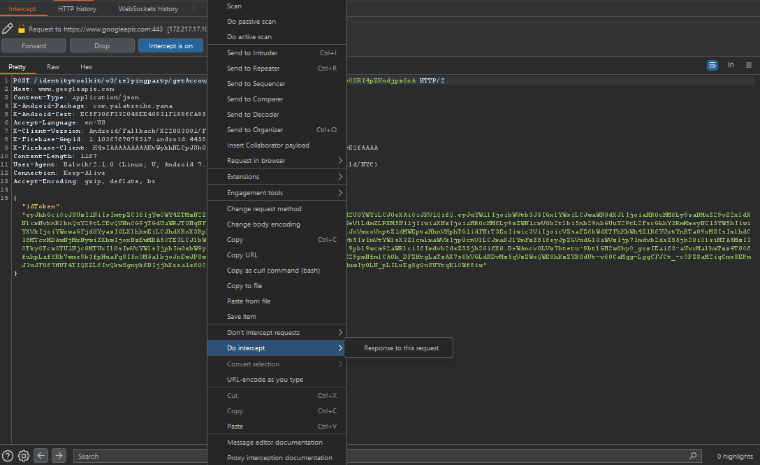 Nice , let’s proceed with the second request which will be the a token sent in a post request , let’s do the same and intercept the response of this request as well .